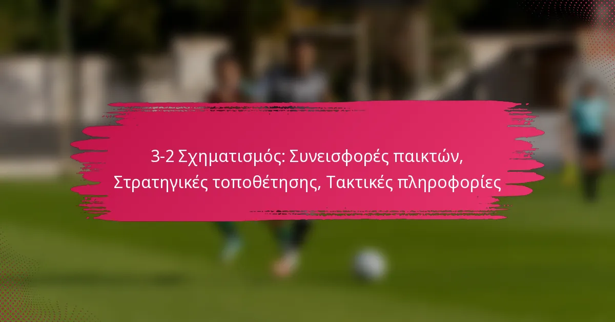 Η διάταξη 3-2 στο ποδόσφαιρο είναι μια τακτική ρύθμιση που περιλαμβάνει τρεις αμυντικούς και δύο μέσους, επιτυγχάνοντας μια ισορροπία μεταξύ αμυντικής σταθερότητας και επιθετικής υποστήριξης. Ορίζοντας τους ρόλους και τις ευθύνες των παικτών, αυτή η διάταξη ενισχύει την επικοινωνία και την προσαρμοστικότητα, επιτρέποντας στις ομάδες να αντεπεξέρχονται αποτελεσματικά στις στρατηγικές των αντιπάλων τους, διατηρώντας παράλληλα μια ισχυρή παρουσία στη μεσαία γραμμή.
